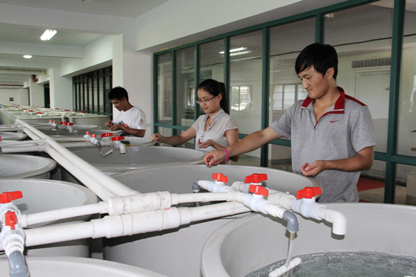 這是在“浙江省水生生物資源養(yǎng)護(hù)與開(kāi)發(fā)技術(shù)研究重點(diǎn)實(shí)驗(yàn)室”,吳成龍博士和正在做實(shí)驗(yàn)的大二水產(chǎn)養(yǎng)殖專業(yè)學(xué)生劉鈺珠的一段對(duì)話。