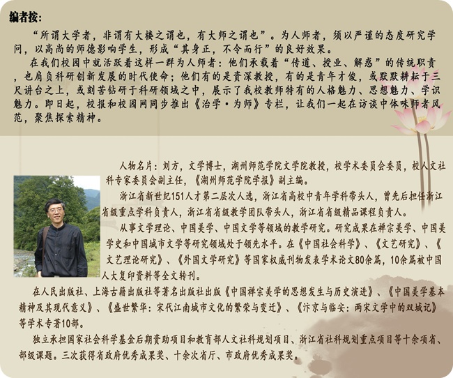 劉方:我進入這個領域,先是從個人興趣愛好開始的。我80年代讀大學的時候正好趕上中國的“美學熱”,在這個契機下我開始對美學產生興趣,在大學讀書時開始研究美學。我的畢業論文是有關莊子美學的,而這篇論文也成為我第一篇公開發表的論文,這為我以后的美學研究奠定了基礎。研究生時我也是主攻美學的。所以以后我把這一興趣做為了我學術研究的主要方向。