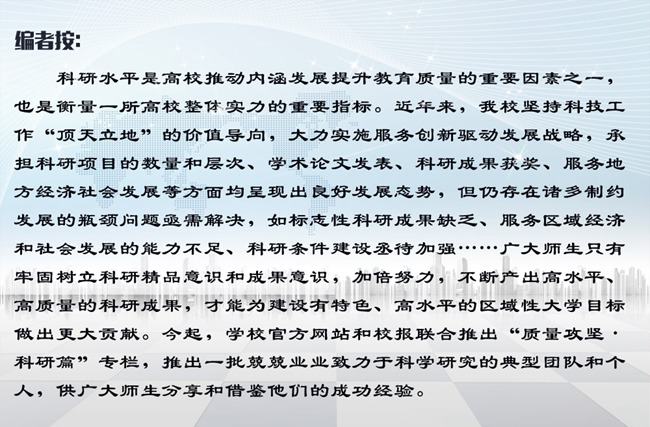 2002年,我校理學(xué)院組建成立。由于師資力量薄弱,學(xué)科發(fā)展方向不明確,物理學(xué)成為薄弱學(xué)科。于少英教授就是在這一年出任理學(xué)院院長(zhǎng),并成為物理學(xué)科的“領(lǐng)軍人物”。來(lái)校不到兩個(gè)月,于少英教授就帶領(lǐng)團(tuán)隊(duì)將“理論物理”成功申報(bào)為省重點(diǎn)扶植學(xué)科,并于2004年順利升為省重點(diǎn)學(xué)科。2007年,她又牽頭成功申報(bào)“物理學(xué)”省重點(diǎn)建設(shè)專業(yè)、“省級(jí)物理實(shí)驗(yàn)教學(xué)示范中心”等,使理學(xué)院很快成為學(xué)校教學(xué)、科研的一面旗幟。同時(shí),學(xué)科堅(jiān)持高標(biāo)準(zhǔn)引進(jìn)人才,吸引了沈彩萬(wàn)、李慶峰等專家來(lái)我校,為學(xué)科發(fā)展奠定了堅(jiān)實(shí)的人才基礎(chǔ)。