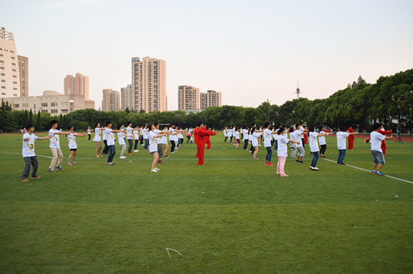 與此同時,在西校區運動場上,由專業隊員帶領的太極操也集體開場:他們神采奕奕,英姿颯爽;他們步伐穩健,動作標準;他們剛勁有力,心隨拳走。同學們矯健的身影,穩健的步伐,優美的動作吸引了很多觀眾的駐足觀看。當被問及此次活動的意義何在時,小管同學這樣說道:“首先,我認為這是一個鍛煉身體的好機會。平時一直坐在位子上,很容易生病,有機會出來運動運動是非常好的。同時我也認為此次活動有利于全民健身。”一招一式,動靜結合,剛柔并濟,同學們在領略太極獨特魅力的同時,也抓住到了運動的精髓。