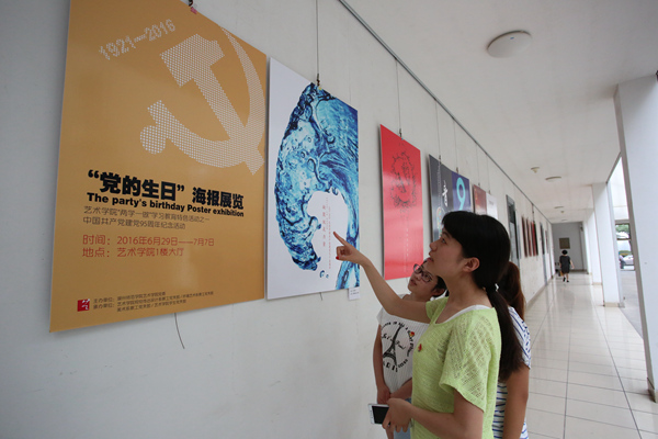 6月30日,為隆重紀念中國共產黨建黨95周年,領悟黨的精神,增強對黨的情感,營造良好氛圍,激發廣大黨員師生扎實深入開展“兩學一做”學習教育熱情。藝術學院特舉辦“黨的生日”、“黨歌選唱”師生音樂會海報展覽。 此次展覽受到學院黨委書記的高度重視,共收到師生作品二十件。展覽進一步豐富了校園文化,體現學校深厚的文化底蘊,展現學院師生的藝術才能,展示我院藝術教育特色成果,促進師生在設計方面的學習交流,提高設計水平和藝術修養。