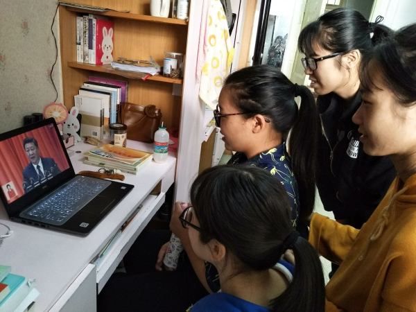 學生宿舍里,沒課的同學們三三兩兩圍坐在筆記本電腦前,仔細聆聽著習近平總書記所作的報告,不時為國家取得的歷史性成就贊嘆稱好。學生張皓一難掩心中的激動表示:“習近平總書記強調的‘歷史和現實都告訴我們,青年一代有理想、有擔當,國家就有前途,民族就有希望,實現我們的發展目標就有源源不斷的強大力量’一直鼓舞著我,這次聆聽了習近平總書記的報告后,我更清晰地意識到自己身上沉甸甸的責任。從現在起,我將更加努力,不斷提升自身專業技能,用自身所學回報國家社會,為‘中國夢’的實現貢獻力量!”