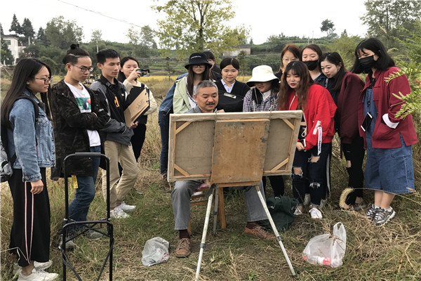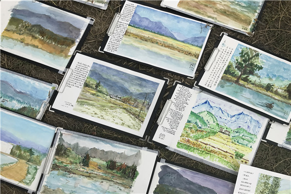 33班的朱立民同學表示:“寫生的兩個禮拜,為迎接十九大,我們早上八點就開始手繪,通過水彩、速寫、素描,畫出我們心中的祖國,中午12點一吃完午飯就接著畫,晚上老師還會為我們一一評畫,同學們都非常珍惜這次機會?!?/p>