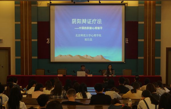 鄭教授長期致力于將心理學知識運用于應用領域,尤其在心理測量、心理咨詢等方面取得了顯著的成就。他從對西方經典心理學理論的借鑒入手,融合中國傳統陰陽太極文化,具體闡述了自創的陰陽辯證療法。他運用大量的生活實例和個人成長經歷,詳細闡述了此種理論的實際運用。講座全程持續2個半小時,內容豐滿、語言幽默、氣氛輕松,場內不時發出陣陣笑聲,讓與會者收獲頗多。