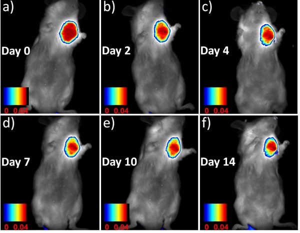針對以上問題,張玉建博士將“大體積”基團引入十字交叉結構分子中,實現(xiàn)了聚集態(tài)下TICT的發(fā)光。該基團存在拉大了分子間距離,為分子構象旋轉提供空間,減弱了分子的聚集熒光淬滅。與吉林大學鄒勃教授合作,利用原位紅外,紫外可見光吸收光譜和穩(wěn)態(tài)熒光光譜,系統(tǒng)地研究了在聚集和單分子狀態(tài)下分子構象改變對TICT發(fā)光性質的影響。最后將該材料應用到靜壓力傳感,實現(xiàn)了從橙色到近紅外的顏色轉變,同時在生物活體上表現(xiàn)很好的生物相容性和光穩(wěn)定性。