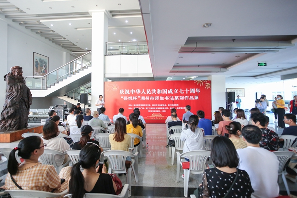 9月9日下午,湖州市師生書法篆刻作品展開幕式在我校沈左堯圖書館舉行。黨委委員、宣傳部長杜寧出席。