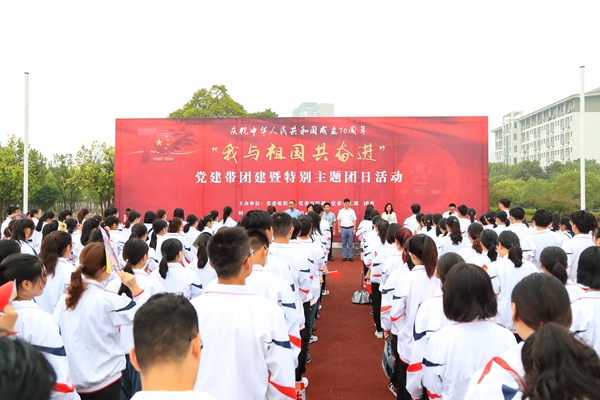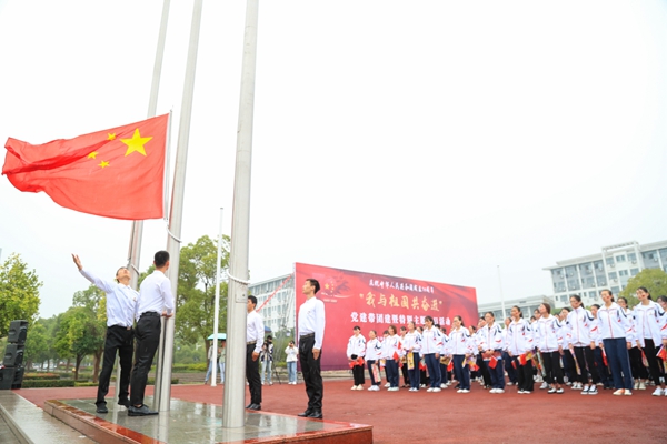 升旗儀式后,蔣云良發表了情真意切的感言,他對新中國成立70年來迢迢奮斗路感慨不已,并與在場師生分享了三點內涵豐富的個人感悟。首先,他引用西漢史學家司馬遷的“常思奮不顧身,而殉國家之急”一語,指出“愛國是每個人最基本的素養”,并提倡廣大青年以真才實干、以服務奉獻愛國,自覺地將個人事業與國家發展、民族復興緊密相連。其次,他引用開國領袖毛主席的“為有犧牲多壯志,敢教日月換新天”一句詩詞,鼓舞大家用奮斗書寫人生,特別是青年大學生,要敢于吃苦、敢于磨煉,通過自己的努力奮斗實現美好的生活。最后,他以習近平總書記“中國夢是歷史的、現實的,也是未來的;是我們這一代的,更是青年一代的”號召,鼓舞全體師生應當不忘初心、牢記使命,在歷史與現實的對話中獲取奮斗的智慧、汲取奮進的力量。