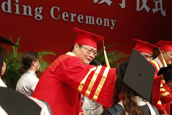 畢業班班主任代表潘永良表示,他是與學生在校園里一起成長起來的。學生給了他很多的進步的力量,因為學生們越優秀,身為班主任的他就需要越努力。潘永良說,畢業生們已從稚氣未脫的學子成長為了社會棟梁,希望他們將自己積累沉淀的知識、德行轉化為未來建設家國的力量。