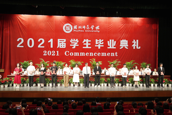 舒志定宣讀了2021屆畢業生名單,校黨政領導班子為畢業生代表頒發了畢業證書。