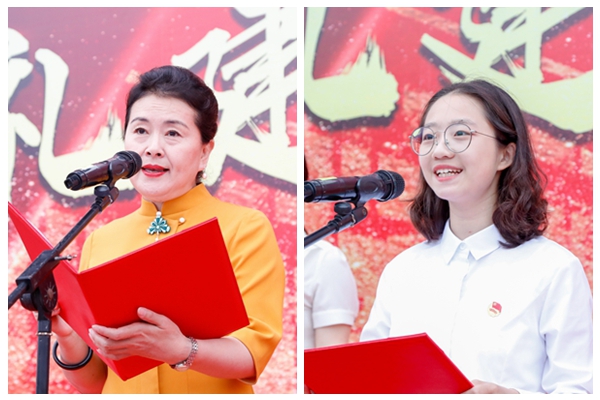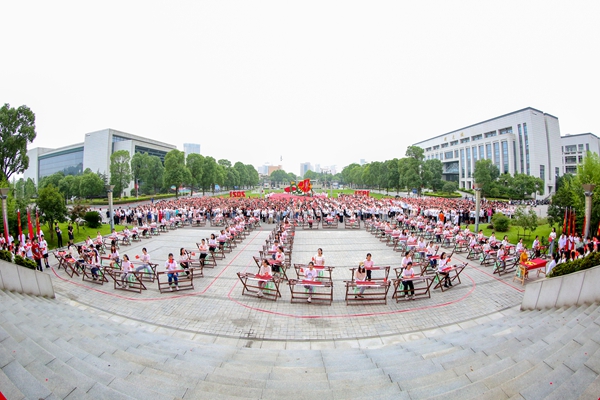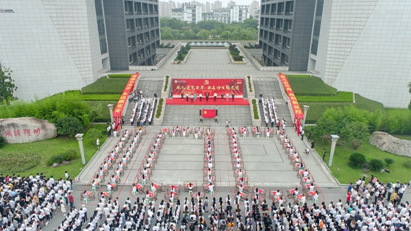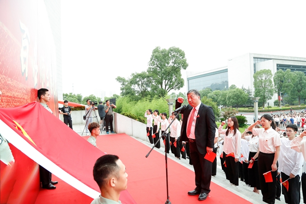 6月17日上午,學校在校訓廣場上舉行了“湖師學子心向黨 百名師生繡黨旗”收針儀式。校黨委書記金佩華,校黨委副書記陳永華、丁敢真,黨委委員、組織部長何小青,黨委委員、宣傳部長杜寧,湖州市退役軍人事務局黨組成員趙正棟出席儀式。研工部、教務處、團委負責人,二級學院黨委書記、副書記以及2000余名師生代表參加了儀式。儀式由陳永華主持。