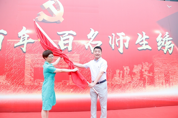 【學黨史】學校舉行“湖師學子心向黨 百名師生繡黨旗”收針儀式(圖)
