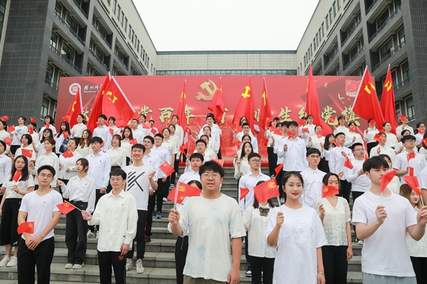 儀式上,金佩華為師生上了一堂現場黨課,帶領師生們學習了有關黨旗的歷史。金佩華表示黨旗從無到有,直至定型經歷了較長時間,其過程與黨發展壯大的歷史密切相關。他希望,廣大師生能認真學習中國共產黨黨史,從百年黨史中賡續紅色基因、傳承革命薪火、汲取前進力量,做到學史明理、學史增信、學史崇德、學史力行,更加自覺地用習近平新時代中國特色社會主義思想武裝頭腦,胸懷憂國憂民之心、愛國愛民之情,奉獻祖國、奉獻人民;更加積極地踐行社會主義核心價值觀,明大德、守公德、嚴私德,爭當向上向善好青年;更加勤奮地增長能力才干,練就過硬本領,知行合一、苦干實干,爭當有理想、有本領、有擔當的新時代青年,以優異成績的獻禮建黨100周年。
