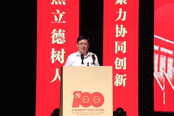 校黨委書記金佩華以《重溫百年輝煌路 砥礪奮進再出發 以高質量黨建引領推動學校高質量發展》為題發表講話。他指出,學校的命運是與民族和國家的命運息息相關的。學校必須始終堅持黨的全面領導,必須始終堅持社會主義辦學方向,必須始終堅持以實現民族復興、國家富強為己任。他表示,近年來,學校各項事業取得了較為豐碩的成果,黨的全面領導不斷加強、內涵式發展不斷提速、黨建引領示范成效不斷彰顯。當前,學校已經站在了新的歷史起點上,接下來一段時期,是完成習近平總書記重要囑托、實現“大學夢”的關鍵期,是貫徹校第四次黨代會精神、落實“三步走”戰略目標和“3918”戰略體系的關鍵期,也是學校由教學型向教學研究型大學轉型發展的關鍵期。