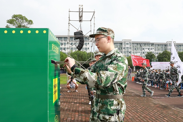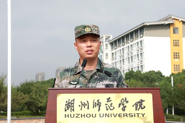 劉飛代表承訓(xùn)部隊(duì)講話。他指出,軍訓(xùn)期間,同學(xué)們要按照軍人的標(biāo)準(zhǔn)嚴(yán)格要求自己,繼承和發(fā)揚(yáng)不怕苦、不怕累的精神,圓滿完成各項(xiàng)任務(wù)。同時(shí),他希望新生通過軍訓(xùn)能夠強(qiáng)化紀(jì)律意識,磨練意志品質(zhì),增強(qiáng)國防觀念;尊敬師長,關(guān)心集體,關(guān)愛他人,增強(qiáng)集體榮譽(yù)感;認(rèn)真總結(jié),有所感悟,培養(yǎng)優(yōu)秀品質(zhì),使之成為將來生活、學(xué)習(xí)和工作中的寶貴財(cái)富。