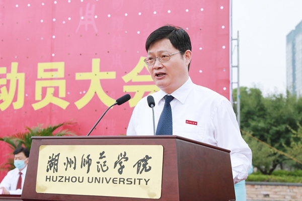 典禮上,蔣云良作了題為《慕鴻鵠以高翔 育英才以致遠(yuǎn)》的講話。他首先向2021級新生的到來表示熱烈歡迎。他表示,湖州是一座歷史文化名城,是習(xí)近平總書記“綠水青山就是金山銀山”理念誕生地,希望新生用腳步去丈量這片土地、用心去閱讀這座城市。他和同學(xué)們探討了在當(dāng)今一個(gè)大時(shí)代背景下,國家、社會、集體和個(gè)人的關(guān)系,并從三個(gè)方面提出要求:一是要明確個(gè)人和國家、個(gè)人和社會、個(gè)人和集體的關(guān)系,培養(yǎng)一種家國情懷;二是要重視第一課堂學(xué)習(xí),加強(qiáng)第二課堂和第三課堂鍛煉,塑造新時(shí)代復(fù)合型人才;三是要融入新時(shí)代,有效規(guī)劃人生,實(shí)現(xiàn)自己的青春夢想。他相信,美麗的校園一定會因同學(xué)們而更加精彩,同學(xué)們奮進(jìn)的青春印記也一定會為學(xué)校所銘刻。