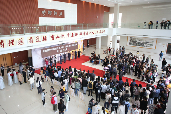 儀式在蠶花藝術(shù)團(tuán)演奏樂曲《蠶桑舞》和校絲綢文化旗袍大使走秀表演《絲韻江南》中拉開帷幕。