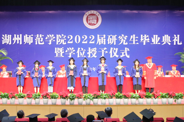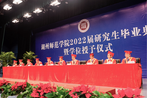 校黨委副書記丁敢真宣讀2022屆碩士研究生畢業名單和2022屆浙江省優秀畢業生名單,校領導班子為2022屆研究生頒發畢業證書。