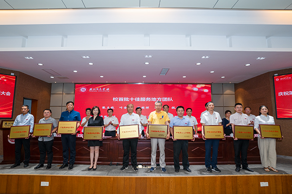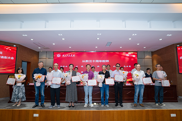 會上,陳永華宣讀表彰名單。校領導班子成員依次為浙江省教學成果獎獲得者、從教三十周年教師、第八屆“陸增鏞教師獎”、第六屆“胡瑗卓越管理獎”團隊獲獎代表、校首批十佳服務地方團隊代表頒獎。