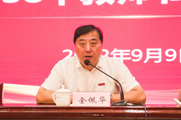 校黨委書記金佩華代表學校黨委和行政向受到表彰的教師表示祝賀,向全校教職員工致以節日祝福,向為學校建設和發展做出重大貢獻的離退休老同志致以崇高敬意。他表示,教師是立教之本、興教之源。今年以來,學校在人才培養、學科建設與研究生教育、師資隊伍建設、科研、社會服務、服務保障、黨建思政等各方面都取得了新進展。他感謝各位老師的辛勤耕耘和不懈努力,并提出三點希望:一是堅持立德修身,做師德師風的垂范者。要將立德修身、錘煉師德師風作為首要職責和根本使命,堅持以習近平新時代中國特色社會主義思想培根鑄魂、啟智潤心,將黨的教育方針貫徹到教育教學全過程,以飽滿的熱情、強烈的責任心和榮譽感投身到為黨育人、為國育才的事業中。二是堅持潛心治學,做學生成才的引路者。要時刻保持本領的恐慌感,不斷提升個人的教學科研能力和水平,潛心研究、刻苦鉆研,永攀學術高峰,積極開展有組織的科研,讓科研真正成為一種興趣和文化。三是堅持實干爭先,做更名創大的貢獻者。更名創大沒有旁觀者,全體師院人都是實踐者、推動者、奮斗者。要始終保持實干爭先的精神狀態,心往一處想、智往一處謀、勁往一處使,匯聚起更名創大的磅礴力量。