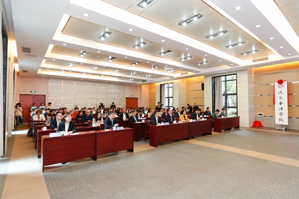 儀式上,蔡旭昶、喻運(yùn)鑫、阮葉萍、金佩華、陳永華、舒志定共同為“沈家本法學(xué)院”揭牌。