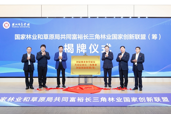 11月25日,由我校牽頭籌建的國家林業和草原局共同富裕長三角林業國家創新聯盟(籌)揭牌儀式暨一屆一次理事會會議在我校順利舉行。中國林學會理事長趙樹叢,浙江省林業局局長胡俠,湖州市副市長王曉軍,浙江省政協農業和農村委員會副主任吳鴻,浙江農林大學副校長吳家勝,浙江省林業局二級巡視員何志華,中國林學會學術部主任曾祥謂,我校黨委書記金佩華、校黨委副書記陳永華、副校長舒志定,我校原校長、聯盟第一屆理事長張立欽以及其它聯盟成員單位相關領導出席揭牌儀式。
