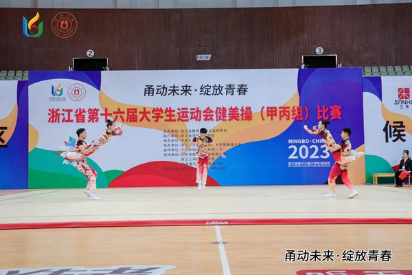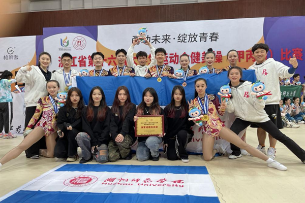 近日,浙江省第十六屆大學生運動會健美操(甲丙組)比賽在寧波大學舉辦。我校健美操隊在教練唐鵬、趙一玥的帶領下,以高超的技能,獲3金1銅,創我校自參加該項賽事以來的最好成績。學校還獲“體育道德風尚獎”等榮譽稱號。