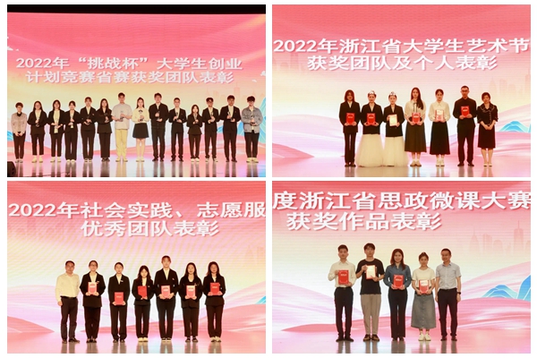 活動現場對過去一學年為學校改革發展貢獻青春力量的師生和團隊進行了隆重表彰,與會領導為全國“挑戰杯”大學生創業計劃競賽銅獎獲得者、浙江省“挑戰杯”大學生創業計劃競賽金、銀、銅獎等40余名獲獎代表頒發證書和獎章。