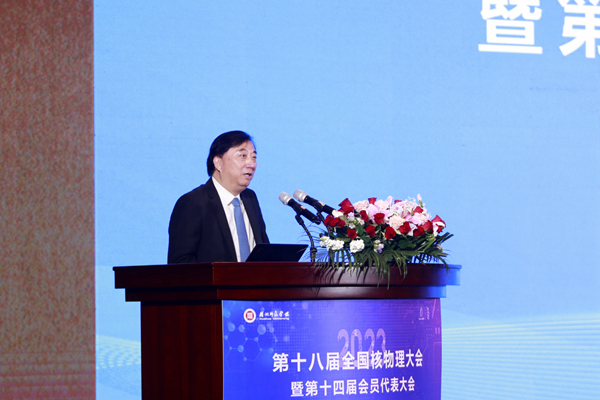 陳東風宣讀中國核學會賀信。賀信指出,全國核學會核物理分會成立以來,加強了核物理研究在我國國民經濟方面的應用研究,提升了我國核物理的研究能力與水平,團結凝聚了核物理研究領域的優秀人才,壯大了中國核學會的實力和影響力,為我國核事業建設作出了重要貢獻。