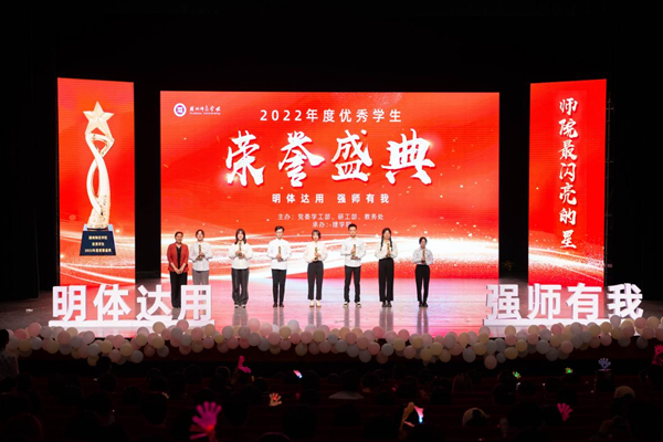 近年來,學校堅持立德樹人根本任務,不斷完善學生評優評獎體系,通過舉辦榮譽盛典等活動表彰先進、樹立榜樣,傳承湖師精神,激勵更多學子向榜樣學習,志存高遠、腳踏實地,讓奮斗成為青春最亮麗的底色。