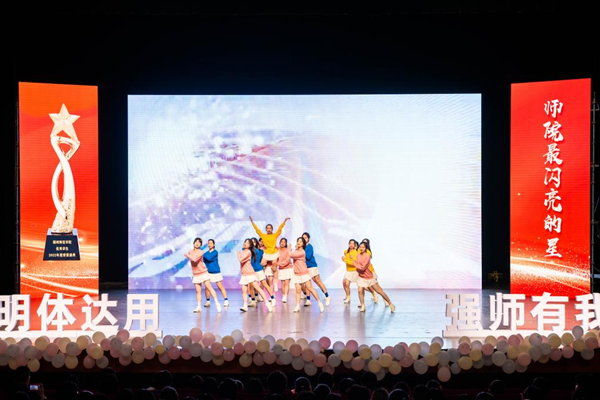 現場,師生代表們共同沐浴星光、追求卓越、感受榜樣力量。生命科學學院“一劑良方”團隊分享他們在學科競賽中奮斗的青春故事,講述了他們以智慧和勇敢突出重圍,榮獲互聯網+國賽銀獎的心路歷程。理學院18級物理學(師范)班分享了班級考研率超50%的“秘笈”及對學校和老師的感激之情。原創詩朗誦《傳承》、音樂學院舞蹈《我們都是追夢人》、體育學院花樣跳繩《悅動青春》展現了師生們攜手并肩奔赴燦爛遠方的昂揚姿態。點點星光匯聚成璀璨星河,盛典在《夜空中最亮的星》《星辰大海》中落下帷幕。