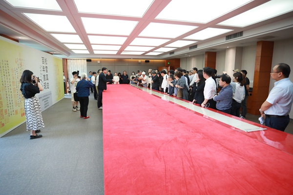儀式結(jié)束后,與會(huì)領(lǐng)導(dǎo)、嘉賓和師生們共同欣賞了在湖州巡展的趙孟頫小楷真跡《臨黃庭經(jīng)》。