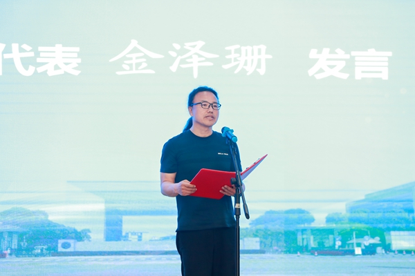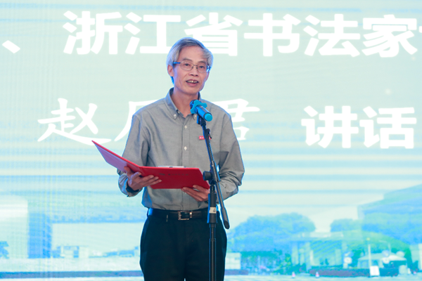 教師代表金澤珊發(fā)言。他表示,能加入以趙孟頫為名的學(xué)院讓人倍感自豪。學(xué)院教師們將以認(rèn)真嚴(yán)謹(jǐn)?shù)闹螌W(xué)態(tài)度和敬業(yè)務(wù)實(shí)的工作精神,立足教研與創(chuàng)作,不斷傳承創(chuàng)新,努力培育出一大批優(yōu)秀的書(shū)畫(huà)藝術(shù)人才。