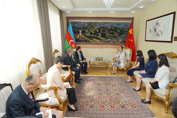 郭大使歡迎金佩華一行訪阿并表示,近年來,中阿關(guān)系在兩國元首戰(zhàn)略引領(lǐng)下蓬勃發(fā)展,正處于歷史最好時(shí)期。兩國教育領(lǐng)域合作不斷深化,高校、智庫等機(jī)構(gòu)交流密切,“漢語熱”在阿不斷升溫,眾多阿優(yōu)秀青年赴華留學(xué)、發(fā)展。她高度評價(jià)我校同阿塞拜疆語言大學(xué)合作成果,強(qiáng)調(diào)在兩校共同經(jīng)營下,阿語言大學(xué)孔子學(xué)院為在阿推廣漢語教學(xué)和中國文化、增進(jìn)兩國民心相通、深化傳統(tǒng)友誼發(fā)揮積極作用,得到阿政府和各界高度贊譽(yù)。她希望我校同阿方高校廣泛建立合作、擴(kuò)大人才交流,為推動中阿人文領(lǐng)域合作走深走實(shí)作出更大貢獻(xiàn),同時(shí),郭大使還希望我校能助推湖州市與阿塞拜疆城市開展經(jīng)貿(mào)發(fā)展、文化交流等。
