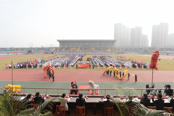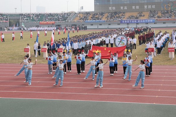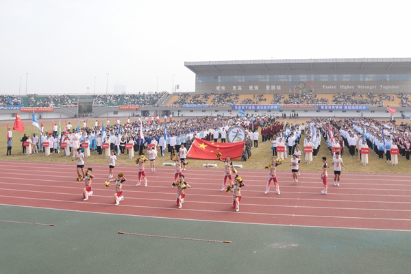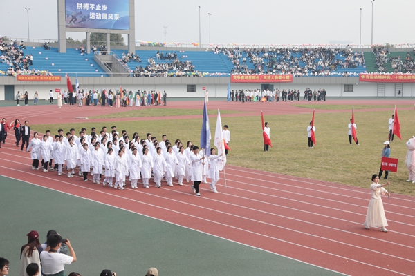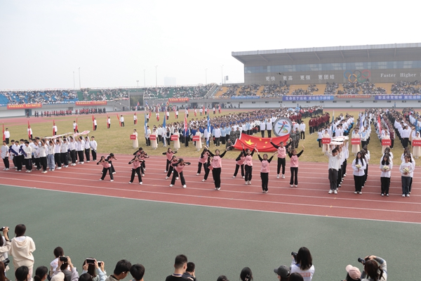 伴隨著雄壯的《運動員進行曲》,國旗護衛隊、校運動會會徽隊以及全體裁判員、運動員邁著整齊的步伐,精神飽滿地步入運動場。各代表隊的方陣依次走過主席臺前,向師生們展現著青春風采。