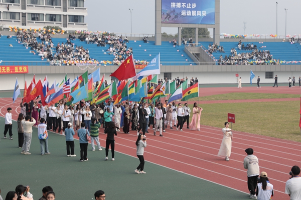 繼續教育學院方陣精神飽滿,以整齊有力的步伐展現著昂揚向上的風貌;國際學院的留學生們身著各國服飾,以異域風情的舞蹈展現著民族特色,充分體現了各國學生之間團結一心的凝聚力;體育學院健美操表演和舞龍舞獅表演將開幕式推向高潮,熱鬧的旋律和復雜的動作,體現了體院人的激情與活力。