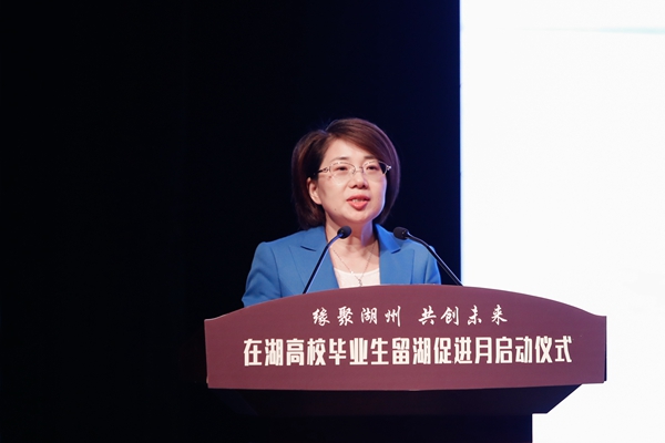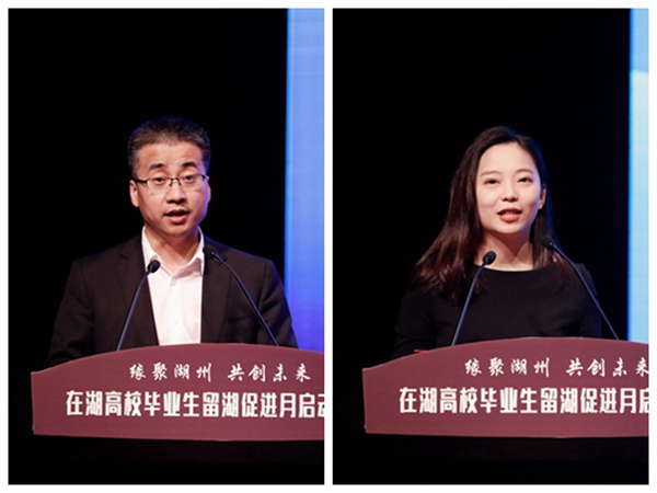 湖州市委組織部副部長、市人社局局長徐曉惠就湖州市大學生就業創業環境進行推介,為大家詳細介紹了大學生招引政策及“青創新城”建設情況,誠摯邀約在湖高校畢業生留在湖州建功立業。
