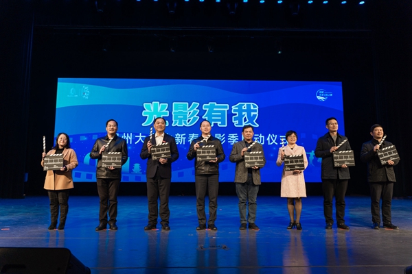儀式上,與會領導們手持電影場記板,共同啟動本次湖州大學生新春電影季。
