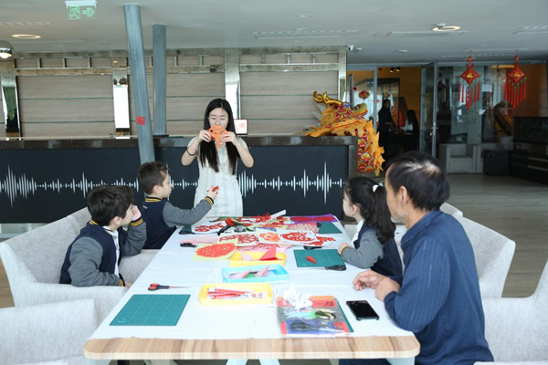 在24日的剪紙大師班活動中,參與者們在濃濃的中國文化氛圍中體驗了以剪紙為主的手工制作的樂趣。活動中,孔院教師講解了剪紙的源起、文化內(nèi)蘊及制作技巧,輔導(dǎo)小朋友們完成各自的剪紙創(chuàng)作。此外,孔院老師還準備了中國結(jié)、紙藝燈籠、拉花龍制作等手工制作體驗。