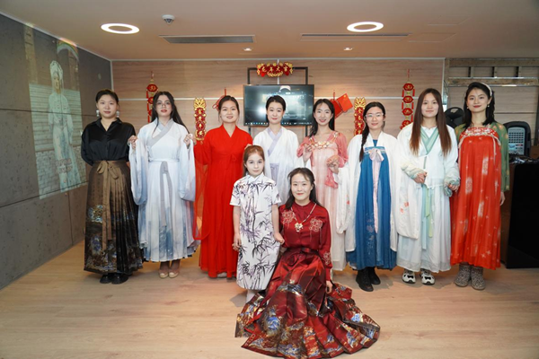 在28日的中國服飾文化講座中,孔院老師介紹了中國歷代服飾的演變、漢服與和服的區(qū)別、中國少數(shù)民族服飾以及馬面裙。在與觀眾進行互動問答時,孔院老師還向參與互動的觀眾贈送了精美的發(fā)簪。隨后,一場美不勝收的漢服秀為整個活動畫上了一道亮麗的句號。