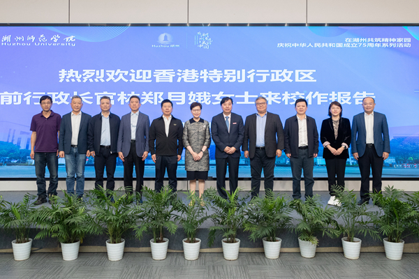 4月28日上午,香港特別行政區第五任行政長官林鄭月娥女士到訪我校,作專題報告并與師生代表互動交流。湖州市委常委、統戰部部長潘友明,全國政協委員、香港浙江省同鄉會聯合會會長詹洪良,浙江省政協委員、香港浙江省同鄉會聯合會常務副會長、湖州旅港同鄉會會長顧偉誠,浙江省政協委員、香港浙江省同鄉會聯合會副會長、香港嘉興同鄉會會長程奇,上海交通大學教授許泓,省委統戰部港澳臺處二級調研員章豐華,湖州市委統戰部常務副部長吳焱國等陪同來訪。我校黨委書記金佩華,黨委副書記陳永華,黨委委員、組織部統戰部部長勞士健,湖州中學副校長竺斌出席活動。我校師生代表和湖州中學文科創新班師生等150余人聆聽報告。