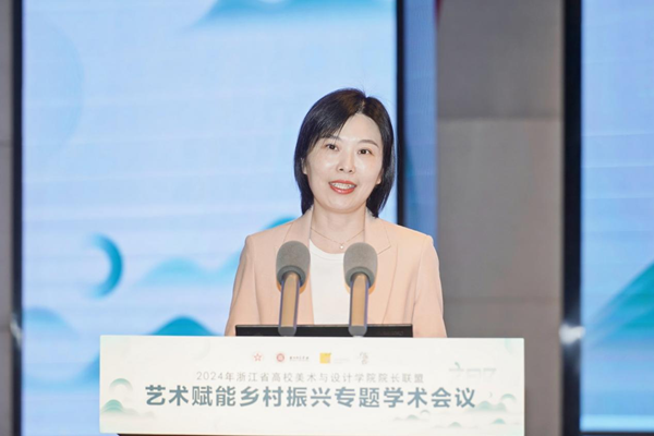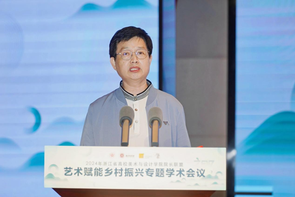 周斌在致辭中指出,建設宜居宜業和美鄉村是全面建設社會主義現代化國家的重要內容,也是全面實施鄉村振興戰略的總要求。推進并強化地方高校參與鄉村建設,是加快實現鄉村全面振興的核心內容與關鍵環節,也是彰顯高校履行時代使命和增強社會服務能力的重要表現。高校可以利用自身的教學科研資源、人才優勢,為鄉村提供技術支持、人才培養和文化創新等服務,促進鄉村振興的全面發展。他期待以本次“藝術賦能鄉村振興”專題學術會議為契機,推動藝術設計服務鄉村振興,探討藝術賦能鄉村振興高效路徑,推進浙江省美術與設計教育的高質量發展。