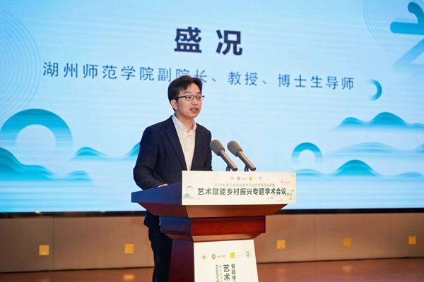 盛況在致辭中指出,湖州師范學院高度重視藝術設計學科發展,尤其注重把湖州的優秀傳統文化與學科專業發展有機結合,成為人文新學科建設的重要力量。近年來,學校藝術設計學科積極融入國家鄉村振興,通過設計賦能多個省份的鄉村發展,取得了顯著成果,榮獲多項國內外大獎,在藝術賦能鄉村振興方面進行了積極有益的探索。長興水口作為茶文化的發祥地,是藝術賦能鄉村振興的典范。他相信本次學術會議不僅是全省高校美術與設計學界的盛會,也必定能產生更多服務鄉村振興的新思想、新方案、新路徑。
