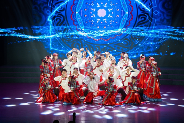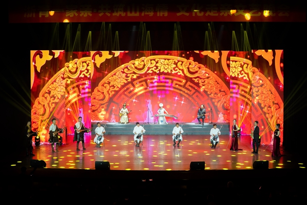 女聲獨唱《青藏高原》中的女高音清亮動人,讓觀眾如身臨其境,感受到海西州震撼人心的高原風光。器樂聯奏《愛在海西》將中西樂器合璧,描繪出海西文化的絢爛璀璨,深情的旋律中盡是海西人民對家鄉與祖國的熱愛。群舞《那達慕盛會》《弦音鼓舞》融入蒙古族獨有民俗元素的舞蹈設計,展現了少數民族善騎善射、能歌善舞的品質。在歌舞《馬背上的民族》中,熱情的高原兒女走下舞臺,將潔白的哈達和一碗碗酥油茶獻給在場嘉賓,將現場氣氛推向高潮。