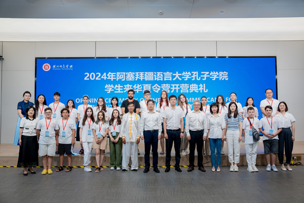 7月5日,2024阿塞拜疆語言大學(xué)孔子學(xué)院學(xué)生來華夏令營開營儀式在我校舉行。我校副校長(主持行政工作)盛況、副校長李慶峰,外事處、國際學(xué)院、漢語國際推廣辦公室、外國語學(xué)院、團(tuán)委、工會等部門相關(guān)負(fù)責(zé)人,阿塞拜疆孔子學(xué)院師生以及外國語學(xué)院的學(xué)生志愿者們共同參加了此次開營儀式。