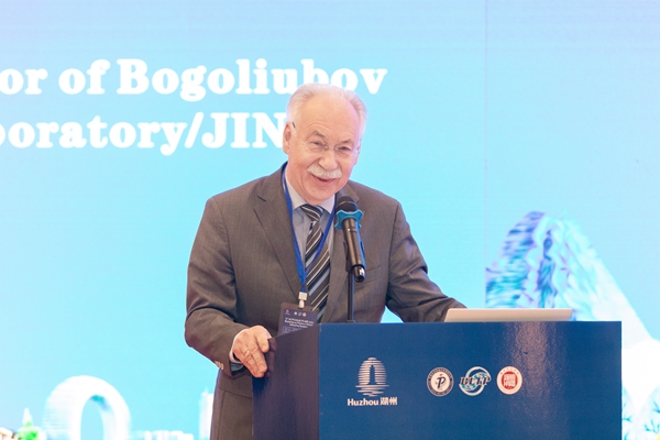 卡扎科夫代表俄方主辦單位對承辦單位的精心組織和安排表達了誠摯謝意,他介紹了博戈留波夫理論物理實驗室的基本情況及在強相互作用系統(tǒng)物理方面取得的研究進展,希望參會專家、學者能廣泛開展學術交流,碰撞出新的思想火花,激發(fā)出新的見解,貢獻出更多的最新理論和技術成果。