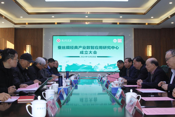 為推動蠶絲綢經(jīng)典產(chǎn)業(yè)的數(shù)字化轉(zhuǎn)型,探索科技與傳統(tǒng)的融合路徑,促進(jìn)產(chǎn)業(yè)升級與創(chuàng)新,12月28日,我校可持續(xù)發(fā)展研究院召開了蠶絲綢經(jīng)典產(chǎn)業(yè)數(shù)智應(yīng)用研究中心成立大會。