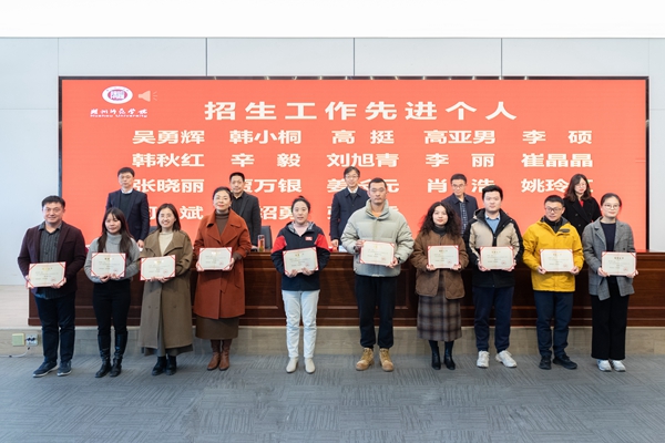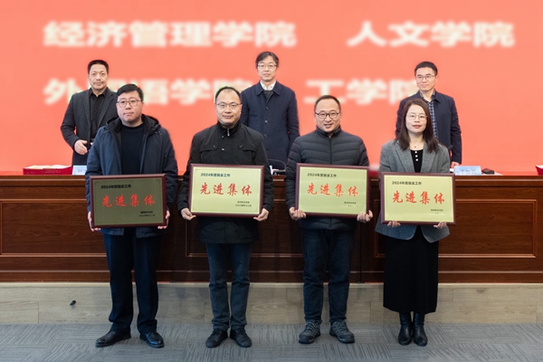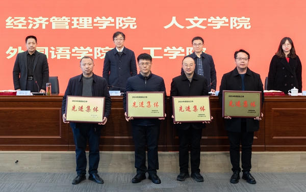 舒志定宣讀表彰文件。經濟管理學院、人文學院、外國語學院、工學院被評為2024年度招生工作先進集體;教育學院(教師教育學院)、體育學院、生命科學學院、醫學院(護理學院)被評為2024年度就業工作先進集體;吳勇輝等18人被評為2024年度招生工作先進個人;李軍等41人被評為2024年度就業工作先進個人。