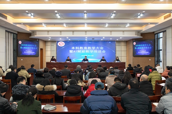 盛況回顧了“十四五”以來我校本科教育教學(xué)工作取得的成績,并對2025年本科教育教學(xué)的重點工作進行了部署:一是夯實本科教育核心地位,全面落實立德樹人根本任務(wù);二是優(yōu)化專業(yè)結(jié)構(gòu)布局,全面提升專業(yè)建設(shè)水平;三是創(chuàng)新課堂教學(xué)模式,全面增強課堂教學(xué)質(zhì)量;四是優(yōu)化實踐教學(xué)體系,全面激發(fā)學(xué)生創(chuàng)新潛能;五是聚焦教師發(fā)展成長,全面推動教師教學(xué)育人提升;六是推進智能教育發(fā)展,全面賦能教學(xué)模式變革。盛況指出,人工智能已經(jīng)成為推動教育高質(zhì)量發(fā)展的重要力量,要主動擁抱人工智能時代,積極應(yīng)對挑戰(zhàn),加快推動人工智能與學(xué)校教育教學(xué)的深度融合,并提出了三點要求:不斷提高認(rèn)識,深刻理解人工智能對教育教學(xué)的深遠(yuǎn)影響;系統(tǒng)謀劃,全面構(gòu)建“人工智能+”課程體系;統(tǒng)籌推進,全面落實人工智能賦能教育教學(xué)改革。