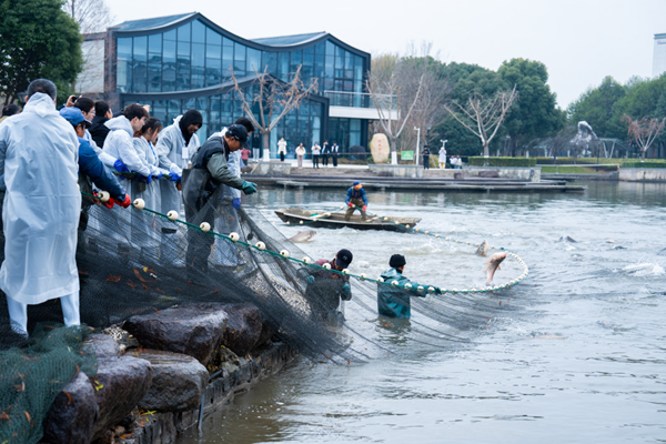 12月30日上午,學校第二屆美食文化節(jié)暨德清湖捕魚活動在東校區(qū)開幕。本次美食節(jié)以“‘魚’你一起過新年”為主題,分開幕式、捕魚活動、美食年貨節(jié)三大會場。開幕式現(xiàn)場有雕刻展示區(qū)、4.2米*0.6米巨型蛋糕分發(fā)、制作魚圓體驗活動等。捕魚活動結束后,學校餐廳連續(xù)三天開展免費品嘗“魚宴”活動,讓廣大師生品嘗勞動的果實、品味收獲的喜悅。美食年貨節(jié)共舉辦2天,由34家供貨商提供幾百種商品,惠及師生,同時也為冬日的湖師校園增添一份“年味”。