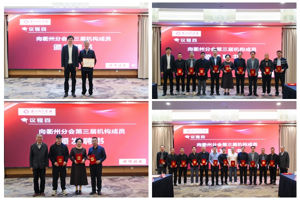 會上,校友工作辦負責人向校友們介紹了學校的發(fā)展近況和取得的豐碩成績。朱鴻宣讀了衢州分會第三屆組織機構成員建議名單。經全體與會校友審議,一致通過建議名單。李慶峰和朱鴻為衢州分會新一屆組織機構成員頒發(fā)聘書。